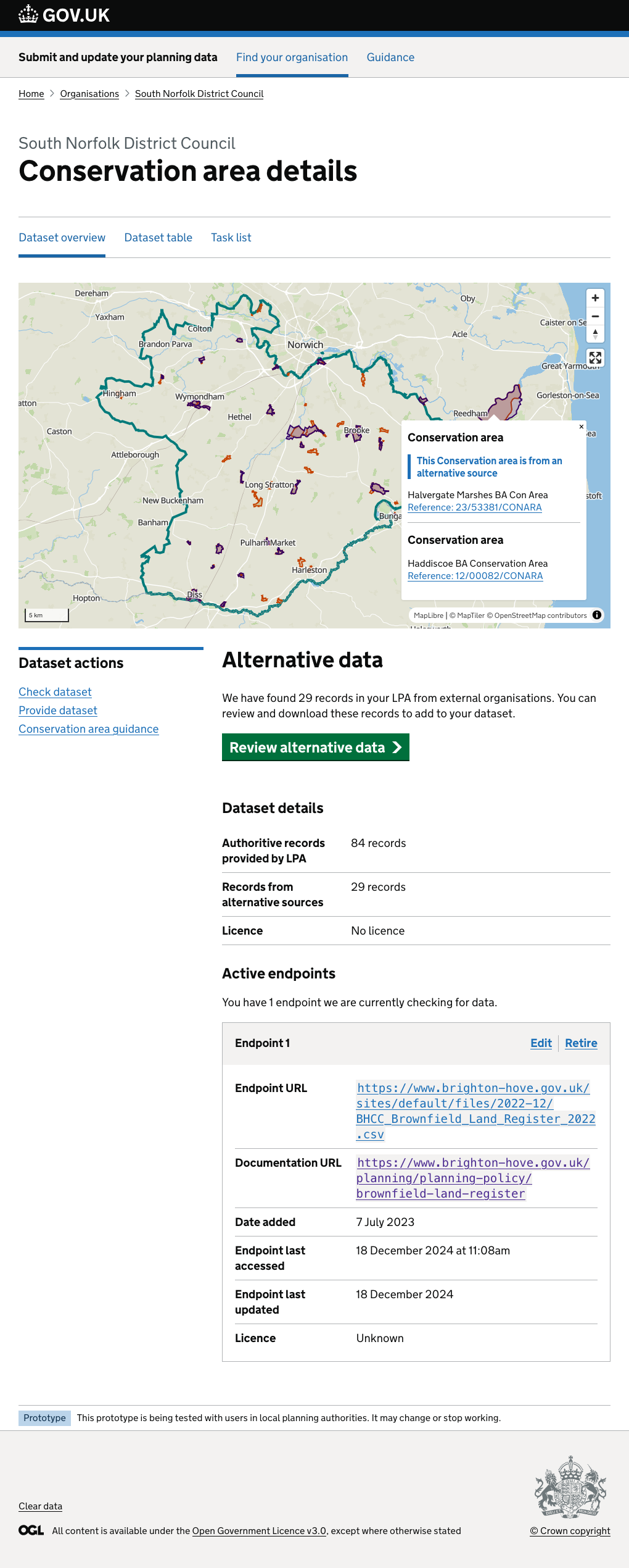 Not all data on the platform has been provided by LPAs: a variety of different sources are used for various datasets (for example, Historic England has a dataset of all conservation areas in England).