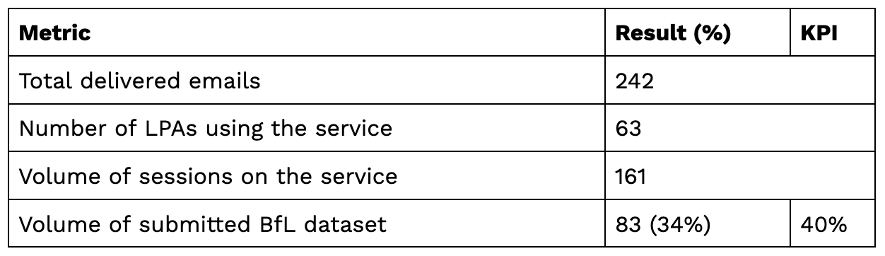 We reached out to the LPAs directly to notify them via email of the need to submit BfL data to the service.