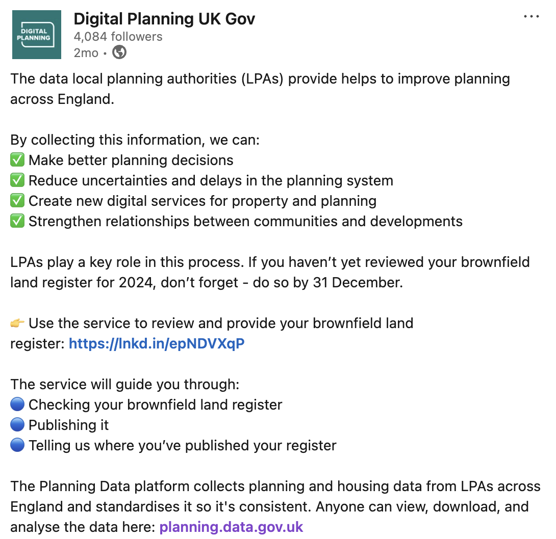 We also worked with the comms team to publish a LinkedIn post to help catch the eye of more LPAs: