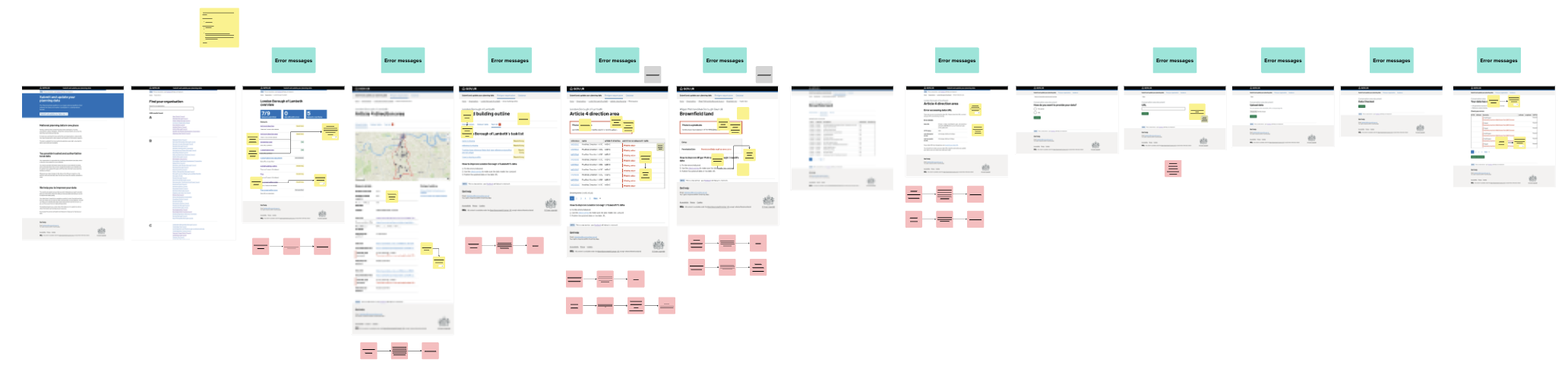 We moved our thinking and mapping from Google Sheets into a Mural board to allow us to connect datasets with data types more freely. We discussed that we wanted the issue messages to be more descriptive, however as some error messages can be related to datasets which may have slightly different requirements, we could not make them completely individualised due to how they are categorised in data management processes. We then collaborated with data management to pair write the new versions of the issue messages. These have now been transferred back into an amended spreadsheet for easier access when integrating into the service.
